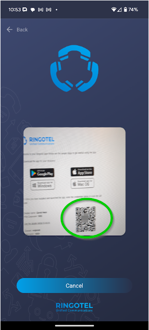 6. Locate the Ringotel welcome email and focus the live camera feed onto the QR code. This QR code will fast forward you past the login prompt.